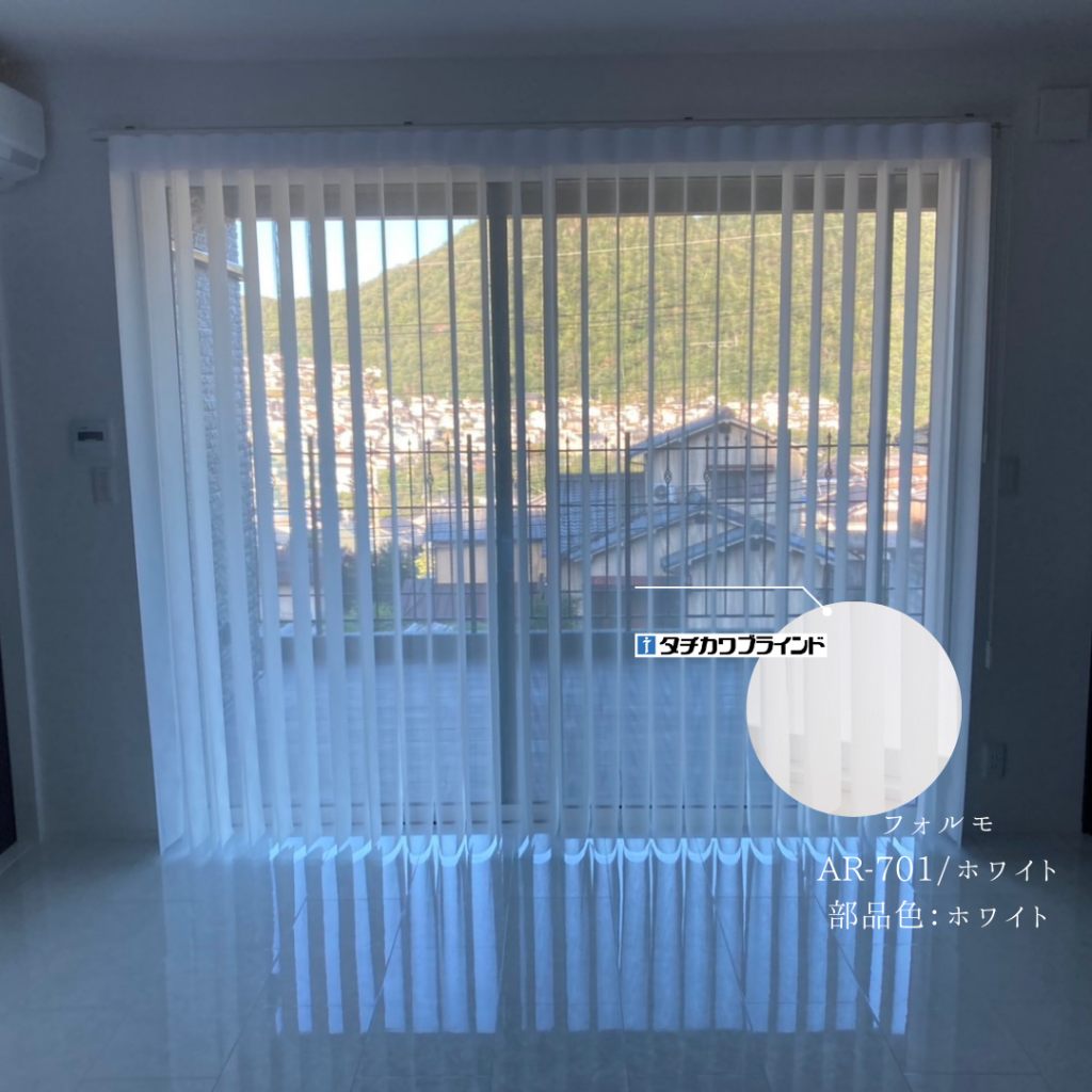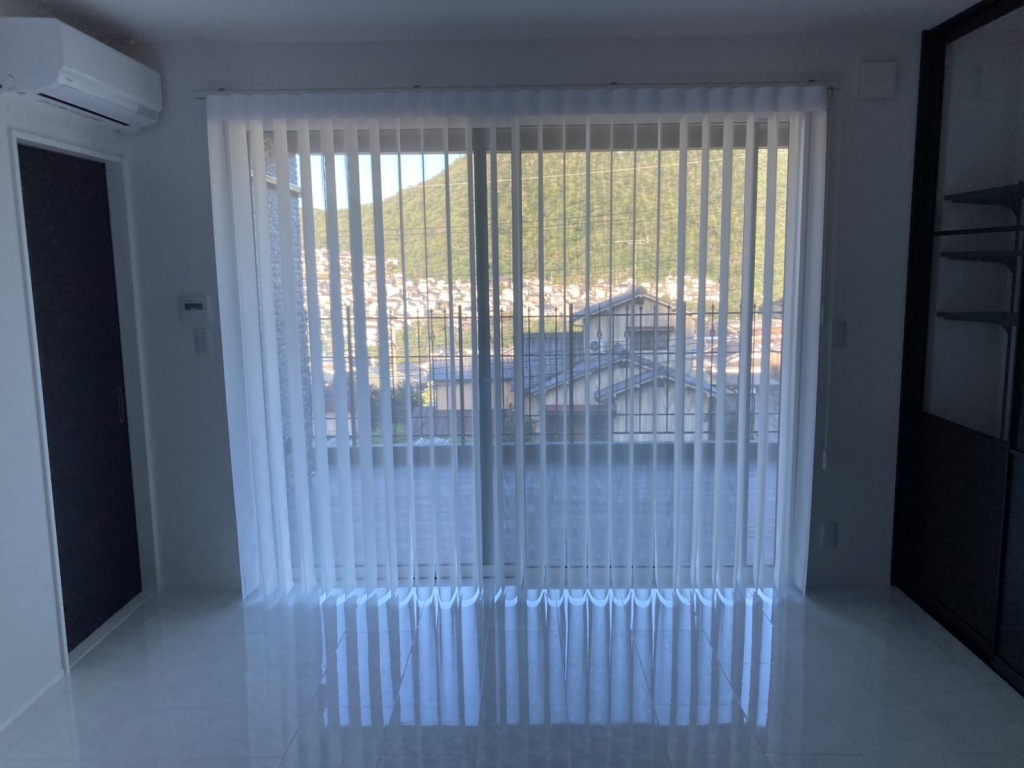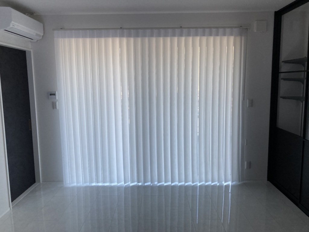 タテ型ブラインドのスタイリッシュさと、カーテンのやさしい雰囲気をあわせもち、