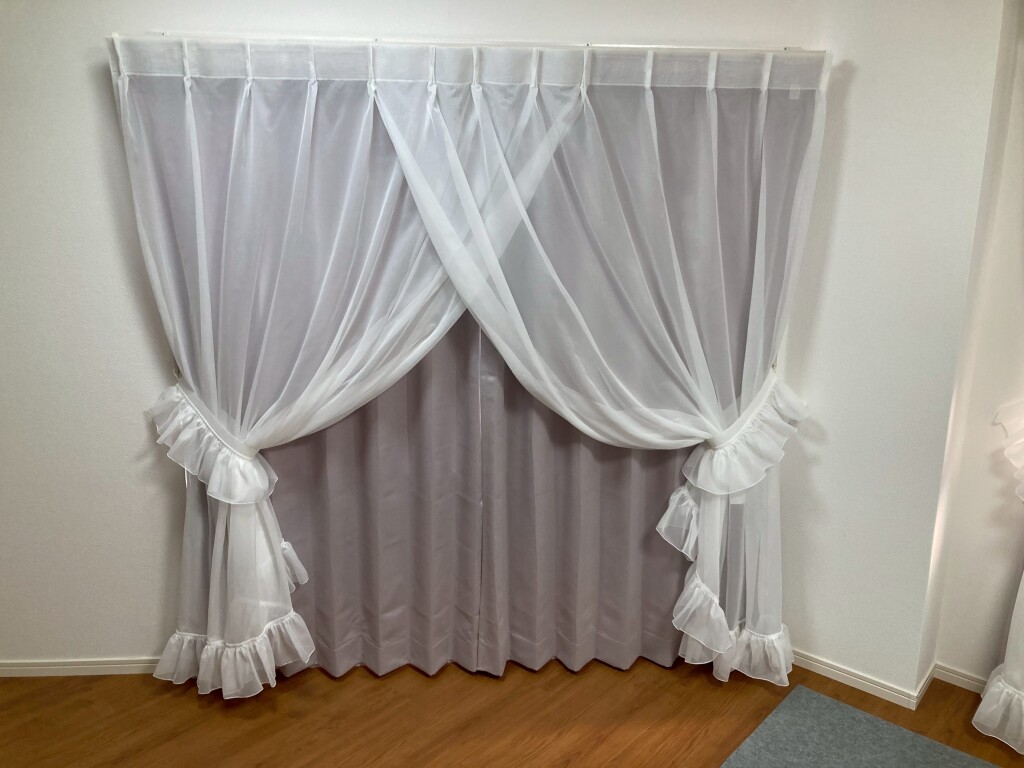 カーテンのクロスオーバーとは、両開きのレースの上部中央を約3分の1ほど重ねて縫い合わせ、